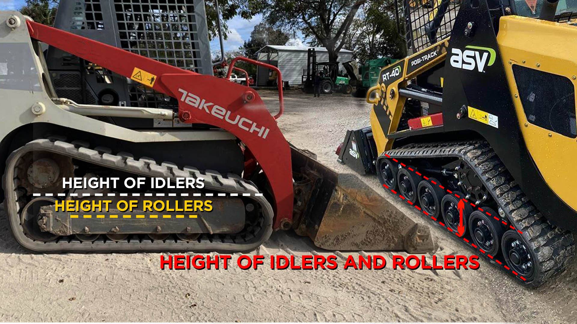 Thanks to their open-style undercarriages, brands like ASV can have roller-size idlers on some skid steers.