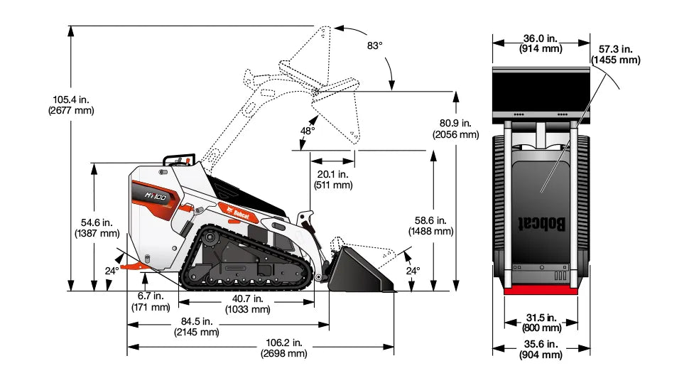 Besides landscape and hardscape, you can use this mini track loader for trenching, site clean-up & prep, demolition, plowing snow, moving material, and loading dump trucks thanks to its impressive lift height of 80.9 in. And although the MT100 is a light machine (3,390 lbs), you can tow with it.