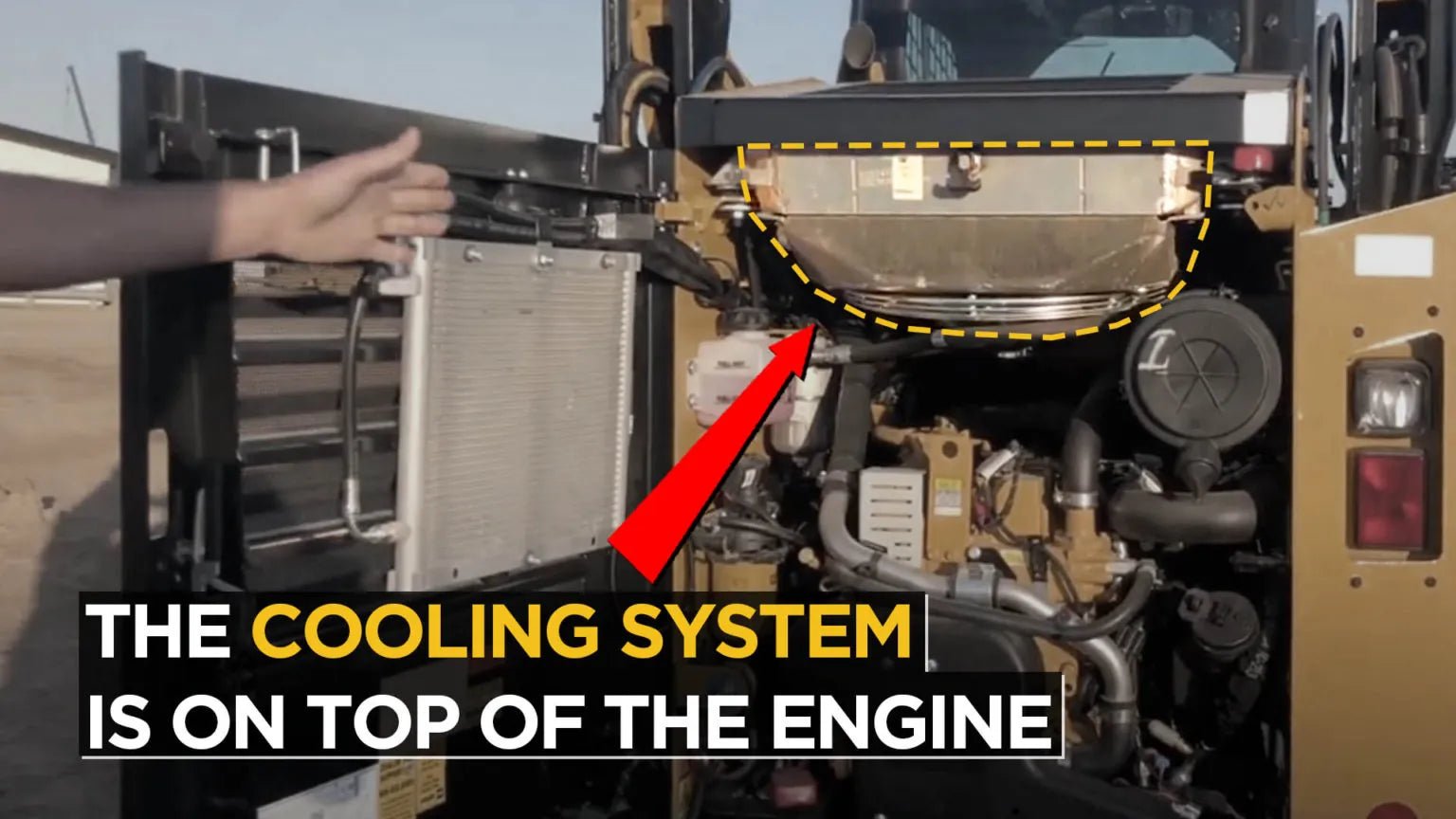 The radio, DPF, and some grease fittings are in awkward locations on the Cat 259D3.