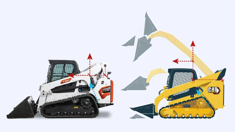 The 333G has a bolted-on undercarriage, which makes it easier to service and maintain in the case of issues. The Kubota SVL97-2 and Bobcat T770 have welded undercarriages for extended durability. The 333G bolted-on design allows you to opt for a suspended undercarriage similar to the one on The Cat 259D3.