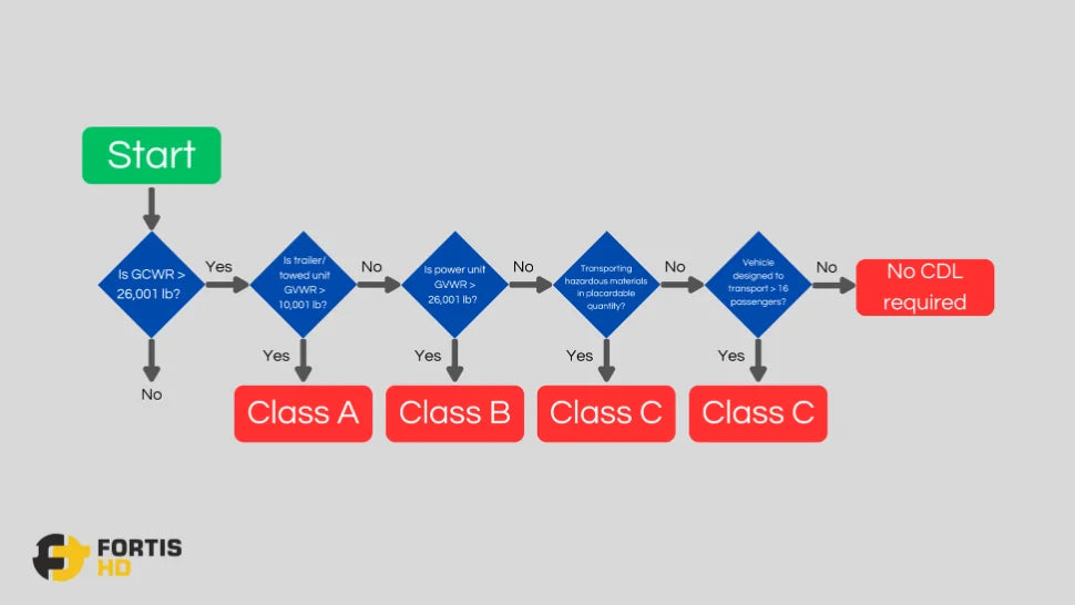 To drive a CMV, you’ll need a CDL. There are three CDL classes according to the FMCSA (see picture below):