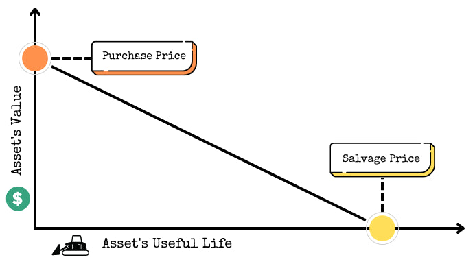 Depreciation often follows a curve, where the value decreases rapidly in the early years and slows down over time. Used equipment has already undergone a steeper initial depreciation, resulting in a lower rate after the 2 or 3 early years.