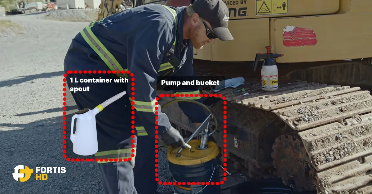So, pump oil through the level hole of the CAT 314E until it comes out of the same hole.