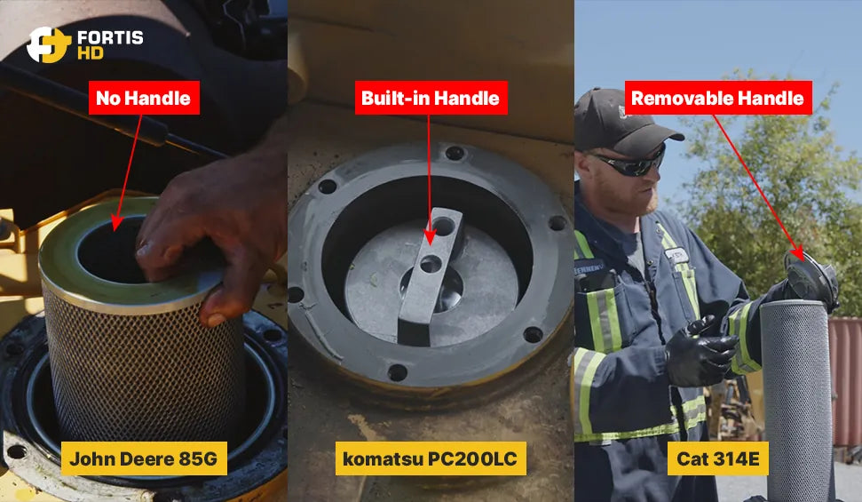The return filter design varies from one brand to another. Hitachi and John Deere have a built-in handle on their filters. Others, like the Komatsu PC200LC hydraulic filter, don’t have a handle.
