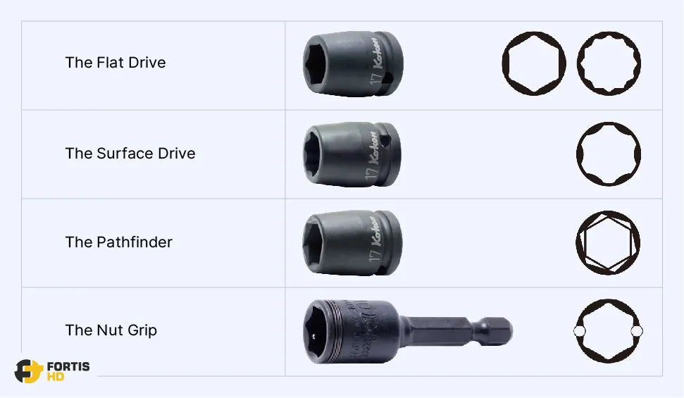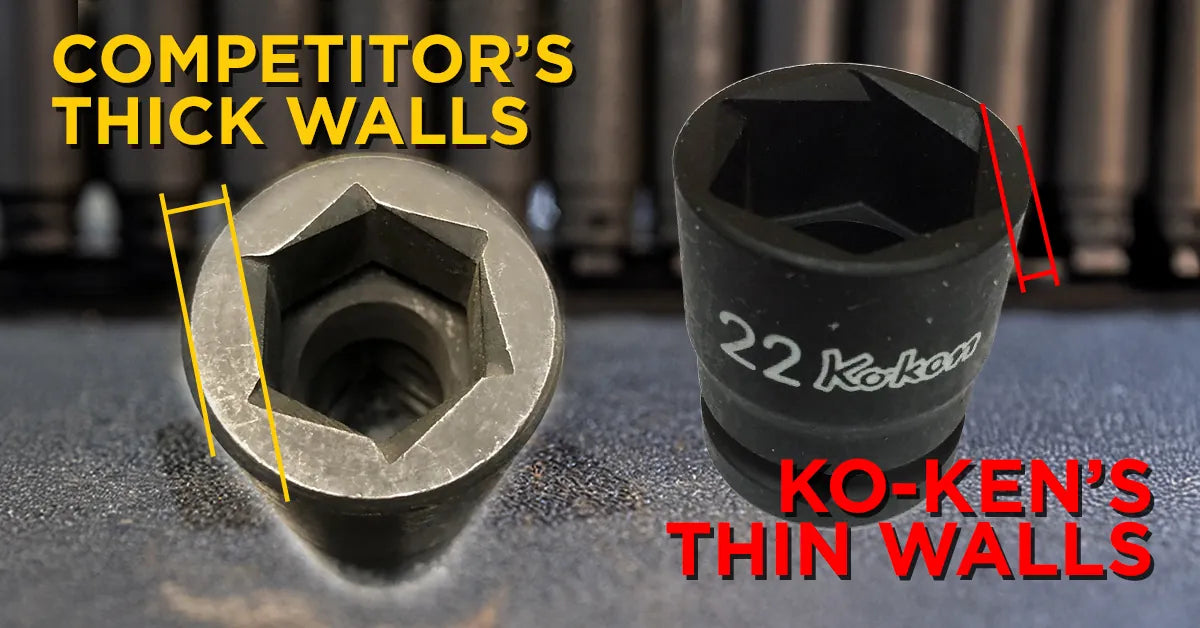 The flat drive design is a standard in the industry. Ko-ken has included it in its 6 and 12-point sockets.