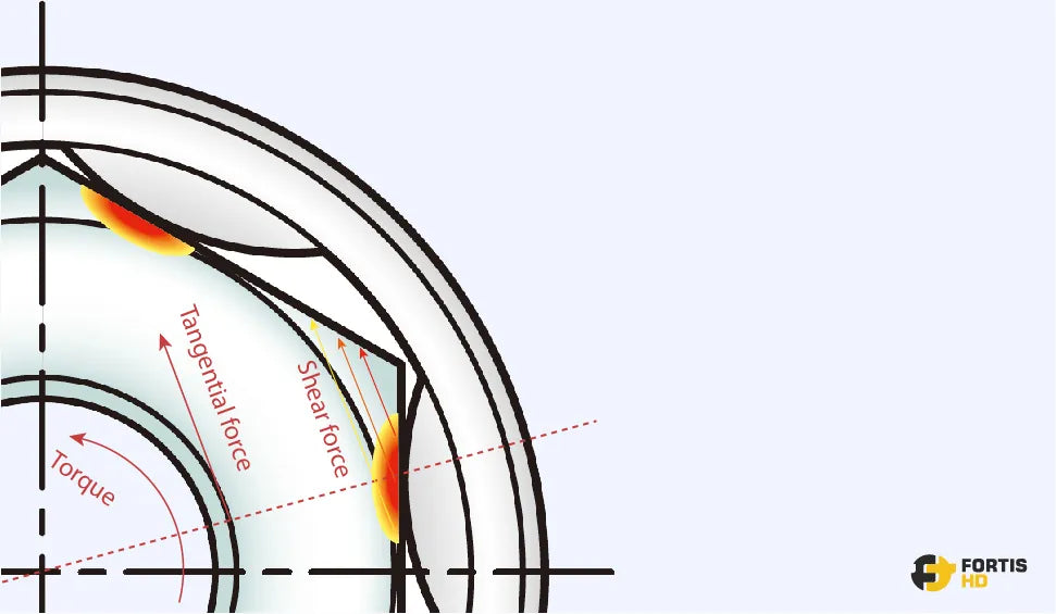 When the faces of the socket drive transmit the torque from the tool’s anvil to the fastener, they produce pressure forces that act along layers within the corner areas, becoming shear stresses.
