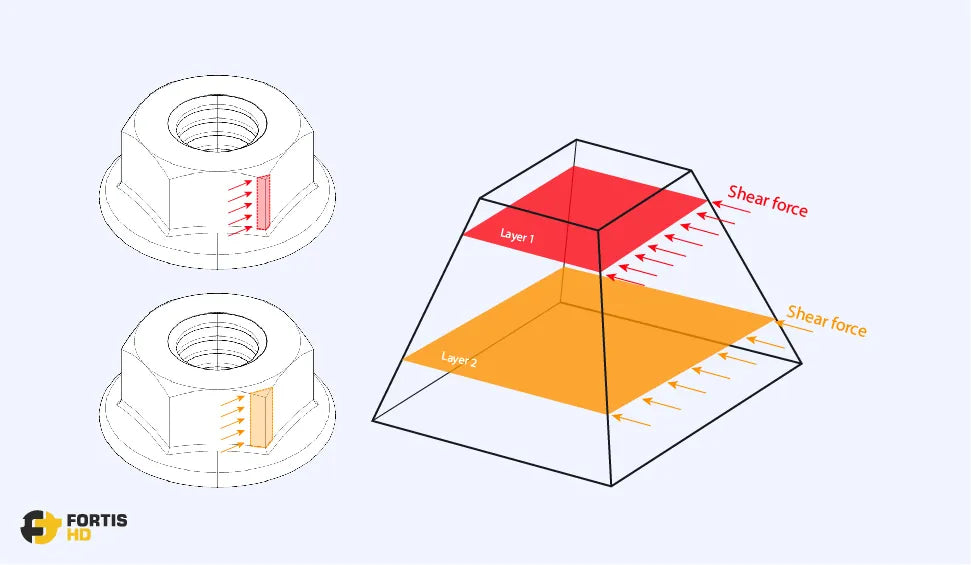 The larger the area of the layer, the more it can withstand shear forces and, thus, be less prone to failure and break (Shear force = Shear stress x Area). The images below explain this concept.