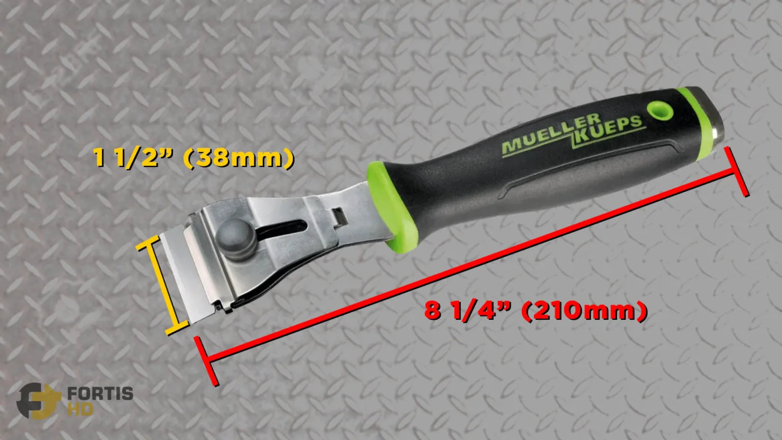 The scraper features a Quick-Lock Safety Release, ensuring easy and secure blade changes for extra user safety.