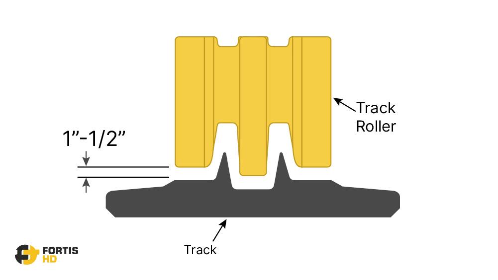 Always refer to the manufacturer’s specifications for the right tension. However, as a rule of thumb, the distance between the middle bottom roller’s flange and the track’s inner bottom side should be 1 – 1/2″.