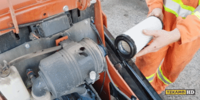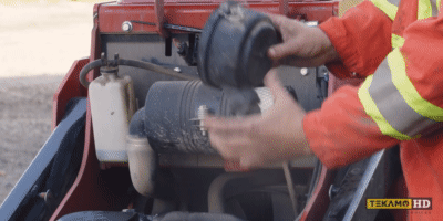 The filter can simply be pulled out. You will find another filter inside. This second filter is a safety filter. They do not always need to be replaced at the same time unless it is also dirty. Wiggle the inner filter out and check it. Then reinstall the safety filter. With the safety filter in place, wipe down the inside of the housing. The inner filter will keep dust from entering the engine. Take out the new filter and compare it to the old one to ensure it is the same diameter before pushing the new one into place.