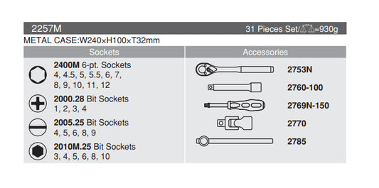 Ko-ken 1/4" Drive Socket Set (31 pieces)