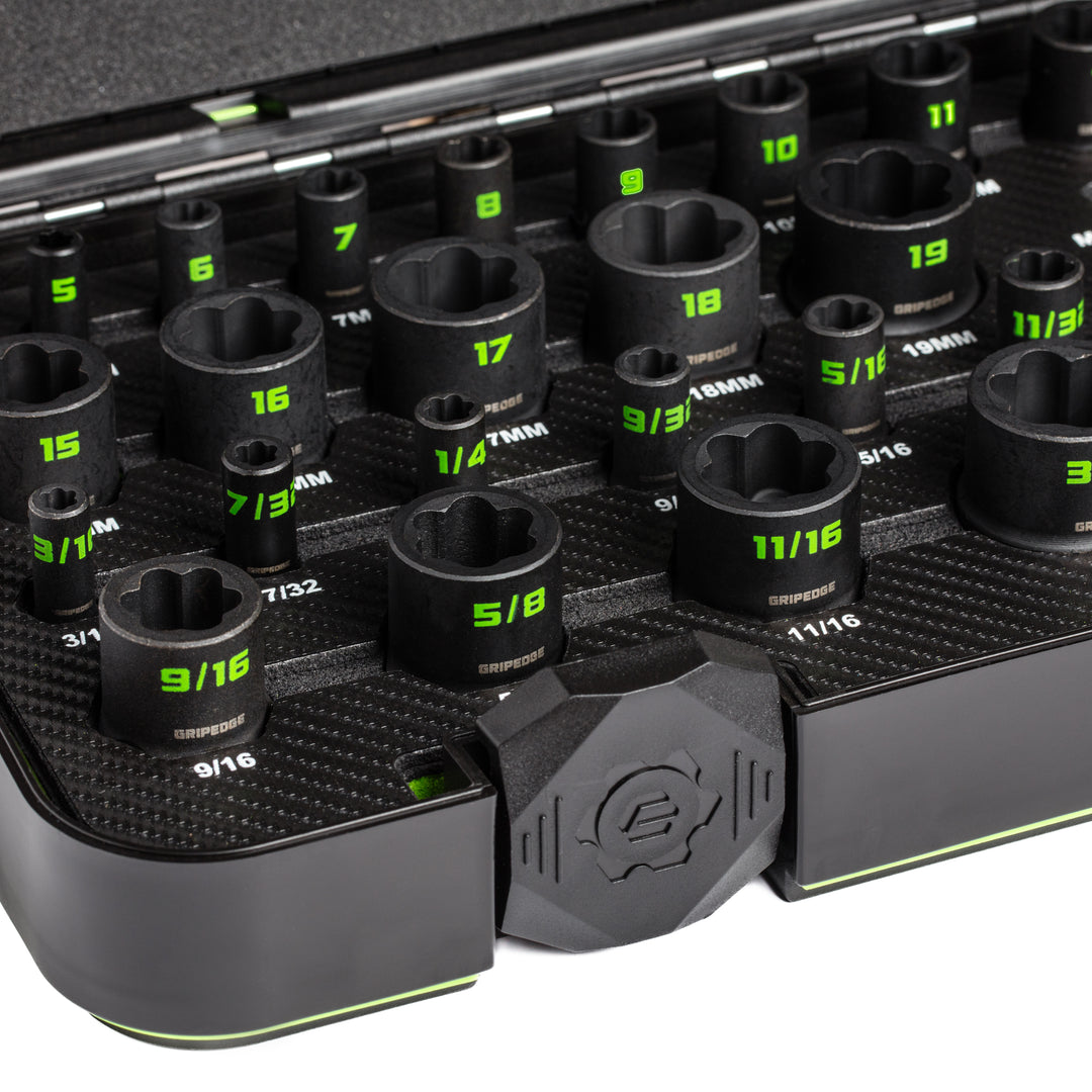 GRIPEDGE RPT Socket Extractor Set — 32-Pc, 1/4″ & 3/8″ Drive, Metric & SAE Master Set