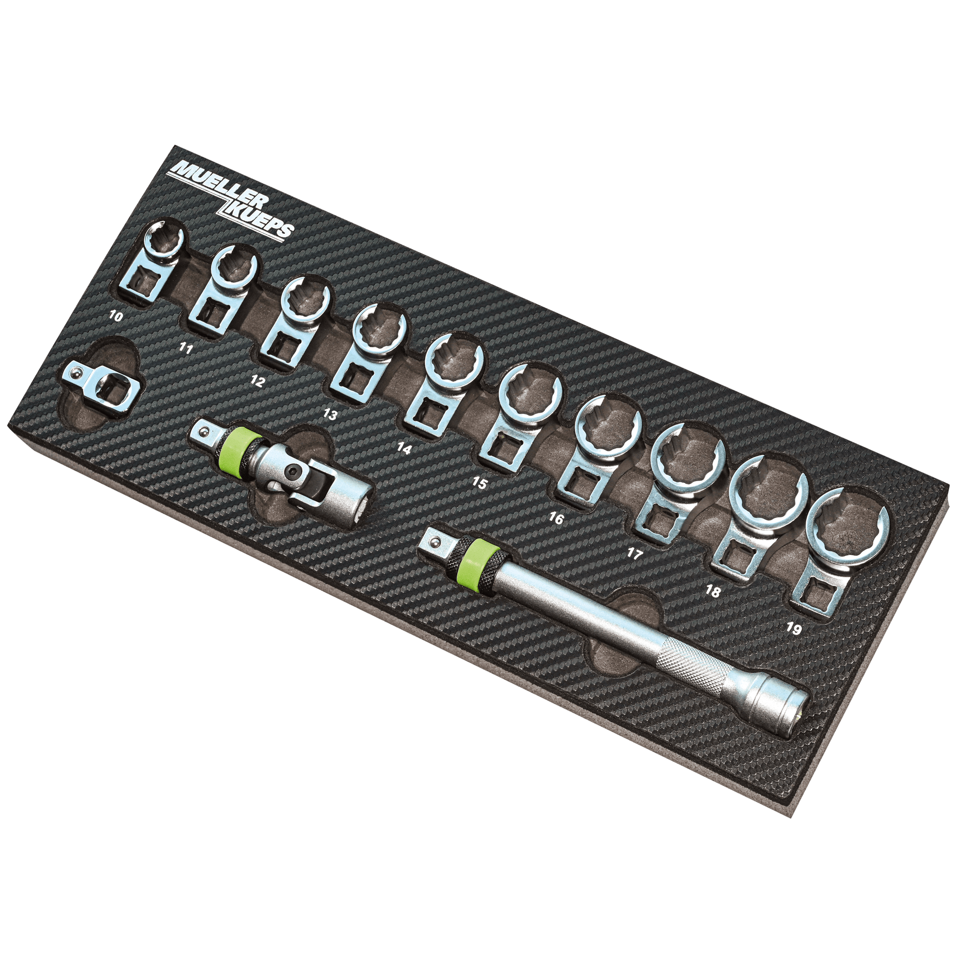Mueller-Kueps 13-Pc Ratchet Flare-Nut Wrench Kit (10–19 mm, 3/8″ Drive)
