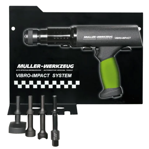 The Mueller-Kueps High Performance Air Hammer “VIBRO-IMPACT” System is designed to effortlessly loosen tight connections, making it an essential tool for mechanics and heavy machine owners. This high-performance air hammer is ideal for disassembling conical seat connections, wheel bearings, bushes, and rusted screw connections.